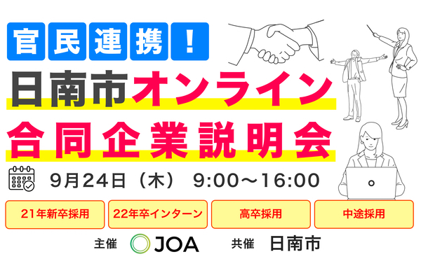 全国オンライン会議(Japan Onliene Association:略称 JOA)は、「雇用」「教育」「まちづくり」をはじめとする様々な分野について、 リアルタイムで双方向性のあるオンライン上でのコミュニケーション技術を応用することで、 新型コロナウイルスの感染拡大を防ぎながらも、地方創生を今まで以上に促進させることを目的としたプロジェクトです。 各地方と都市圏を繋ぐリモートワーク、オンラインでの採用活動、オンライン学習、オンラインを活用した地方移住のマッチングなど、 地方創生を目的としたオンラインの応用方法を創出し、全国の地方自治体と連携して、オンラインを活用した様々な取り組みを行います。