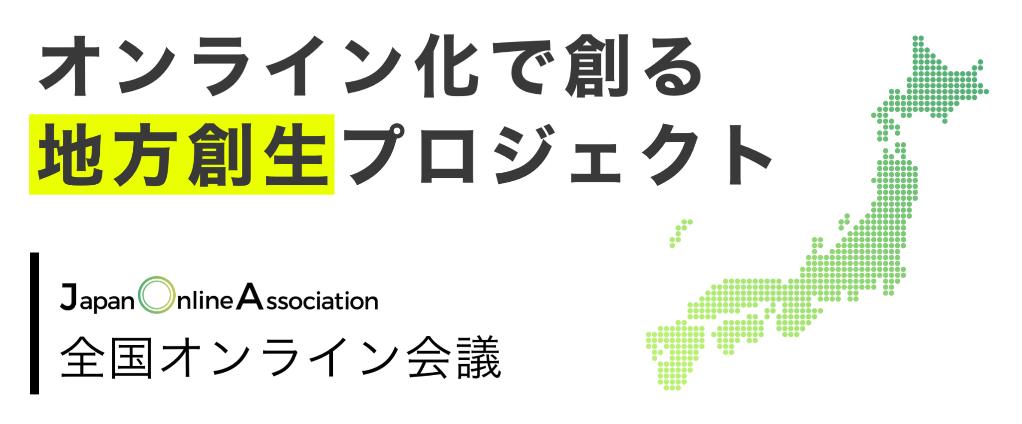 全国オンライン会議(Japan Onliene Association:略称 JOA)は、「雇用」「教育」「まちづくり」をはじめとする様々な分野について、 リアルタイムで双方向性のあるオンライン上でのコミュニケーション技術を応用することで、 新型コロナウイルスの感染拡大を防ぎながらも、地方創生を今まで以上に促進させることを目的としたプロジェクトです。 各地方と都市圏を繋ぐリモートワーク、オンラインでの採用活動、オンライン学習、オンラインを活用した地方移住のマッチングなど、 地方創生を目的としたオンラインの応用方法を創出し、全国の地方自治体と連携して、オンラインを活用した様々な取り組みを行います。